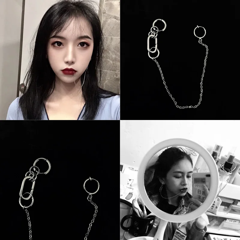 Отзывы о Серьги-клипсы в стиле панк кольцо для губ на длинных цепочках модные украшения