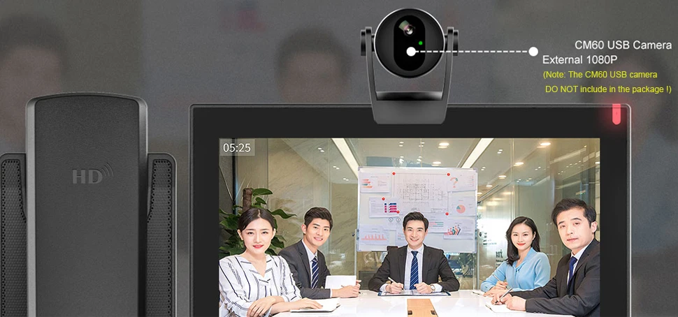 В комплекте дополнительный CM60 камера, X7A поддерживает 3-сторонний выход видеоконференции с Полнодиапазонный hd-экран изображения на экране даже в