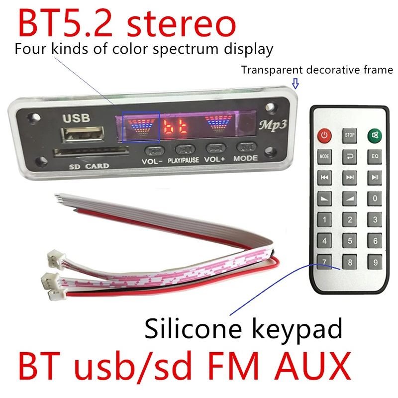 Акция 5V / 12V 5,2 BT стерео проигрыватель дома Театр аудио-усилитель Беспроводной MP3 аудио декодер Цвет спектра плеер Запчасти