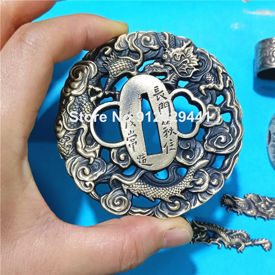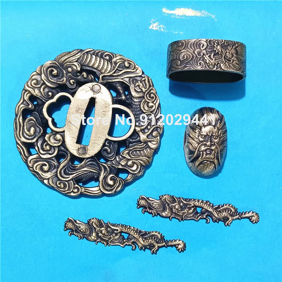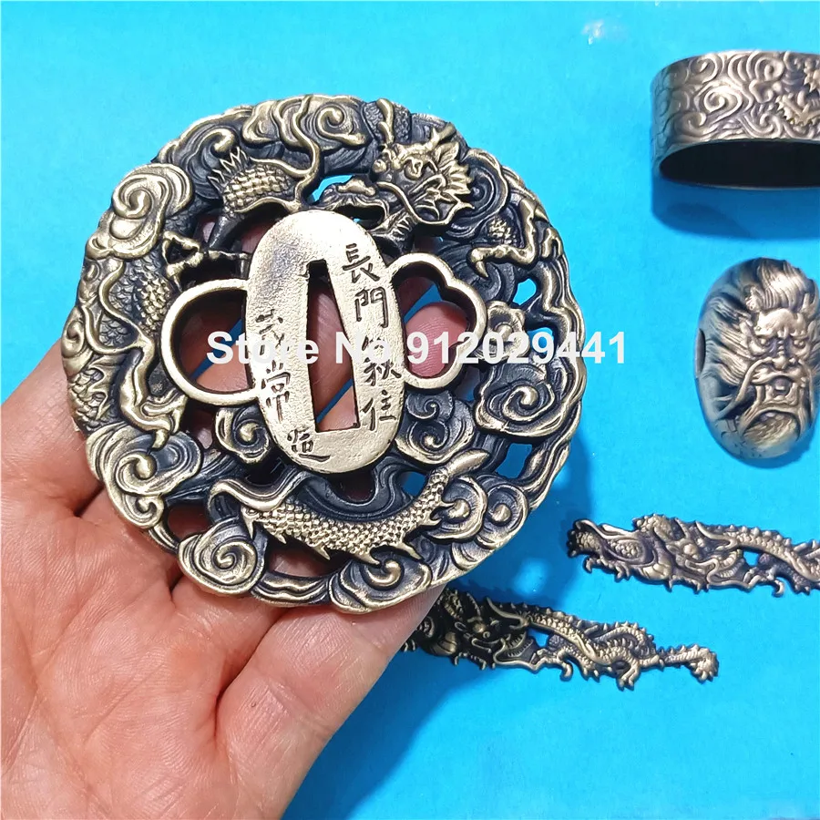 Тема дракона медная ручная защита для Катана/меч вакидзаси набор аксессуаров Tsuba + Menuki + Fuchi + Kashira Хорошая Металлическая фурнитура