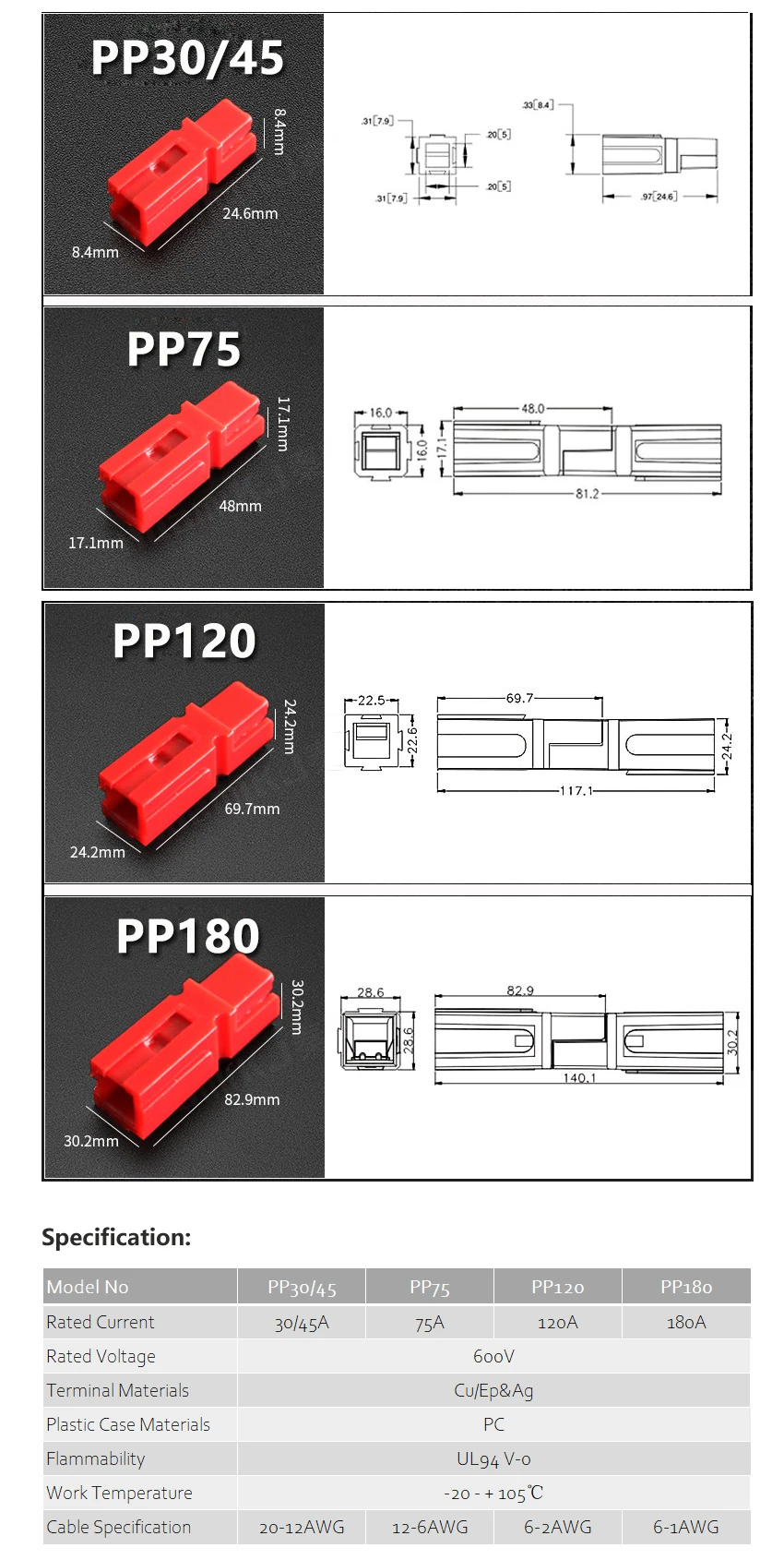 Отзывы о 10Pairs X 30A 45A 75A 120A 180A PP30 PP45 Power Connector Plug Red Black power & 20pcs Contacts Connect Battery Quick Disconnect - купить