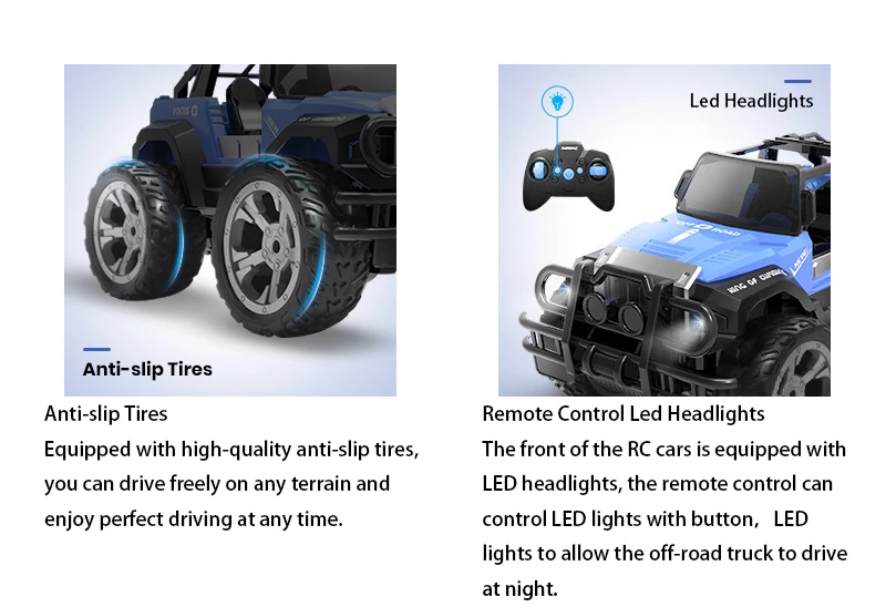 【Высокое качество RC внедорожные грузовики 】: корпус изготовлен из высококачественных АБС-материалов, нетоксичных, безвкусных, безопасных и экологически чистых. Он имеет прочный корпус из АБС-пластика, противоскользящие шины TPR, что позволяет легко ездить на песке, траве, мутных заплатах, скалистых дорожках или прочных дорогах.