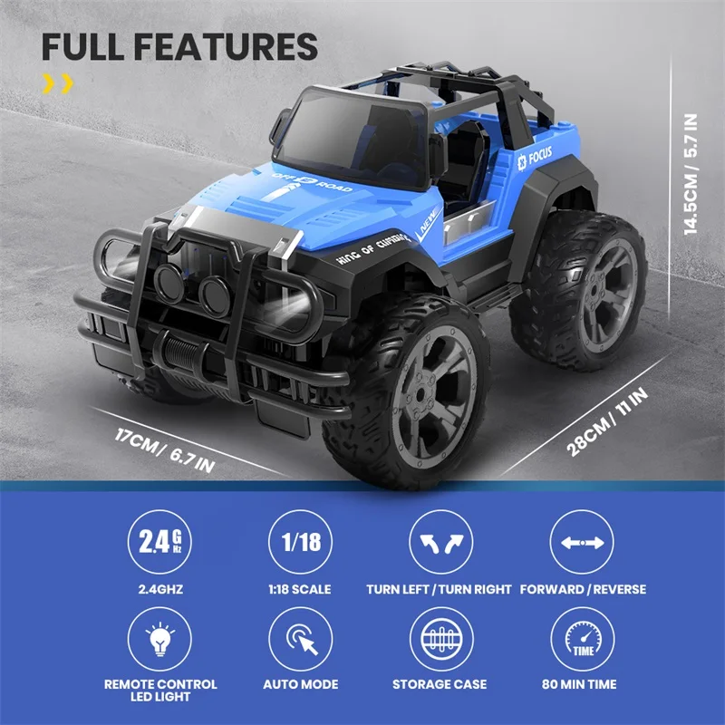 【Настройка радиоуправляемого автомобиля 】: 1:18 масштаб 2WD внедорожный грузовик и спереди имеет бампер автомобиля против столкновений, сзади есть чехол для хранения, передняя сборка светодиодный фары. В отличие от других RC автомобилей, он имеет автоматический режим, который может заменить ручной режим.