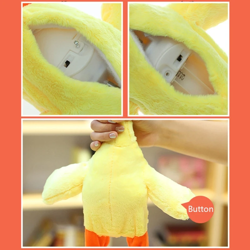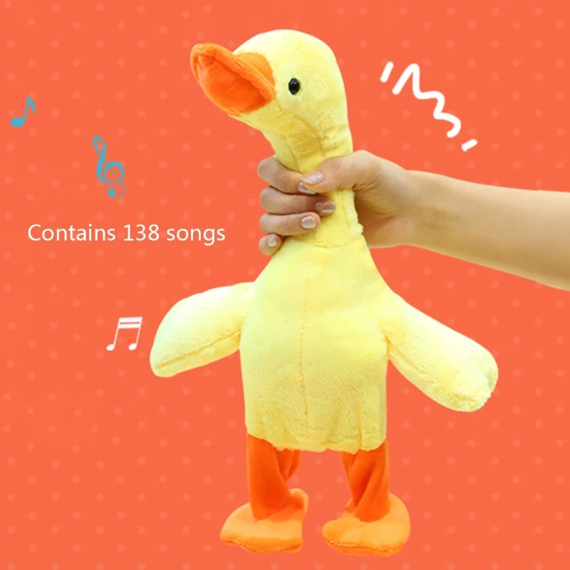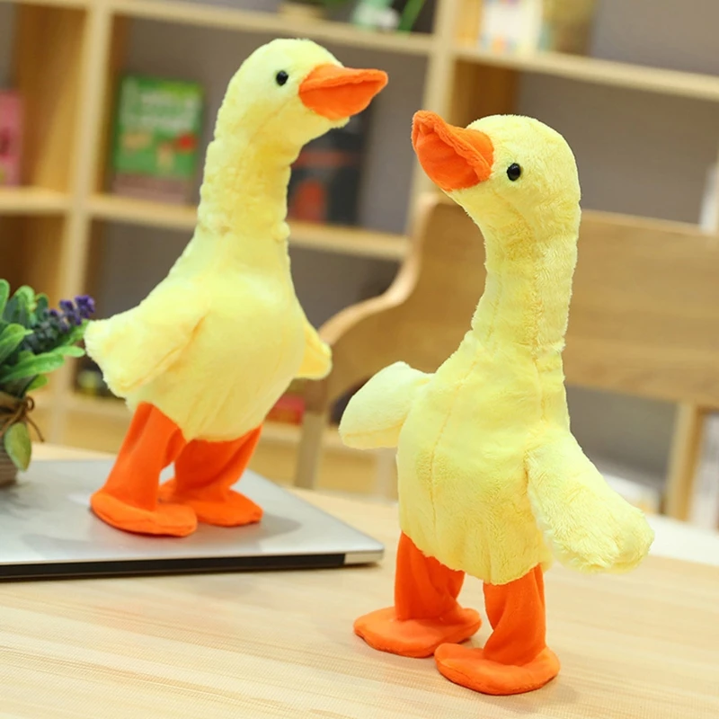 Реалистичный дизайн: мягкий дизайн шитья, чтобы сделать его реалистичной уткой и красивой формой для детей, чтобы играть с, включите кнопку шеи, чтобы активировать игрушку, утка начинает ходить и крутить тело с музыкой, кавайная плюшевая кукла, чтобы снять ежедневное давление.
