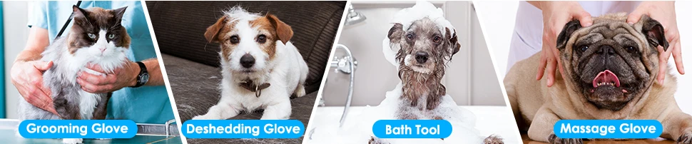 Щетка для ванны:Купи домашних животных с помощью этой перчатки, которая легко очистит волосы питомца и даст вашим питомцам нежный массаж, не повреждая их кожу; дизайн с пятью пальцами позволяет ухаживать за труднодоступными местами, такими как хвост или лицо