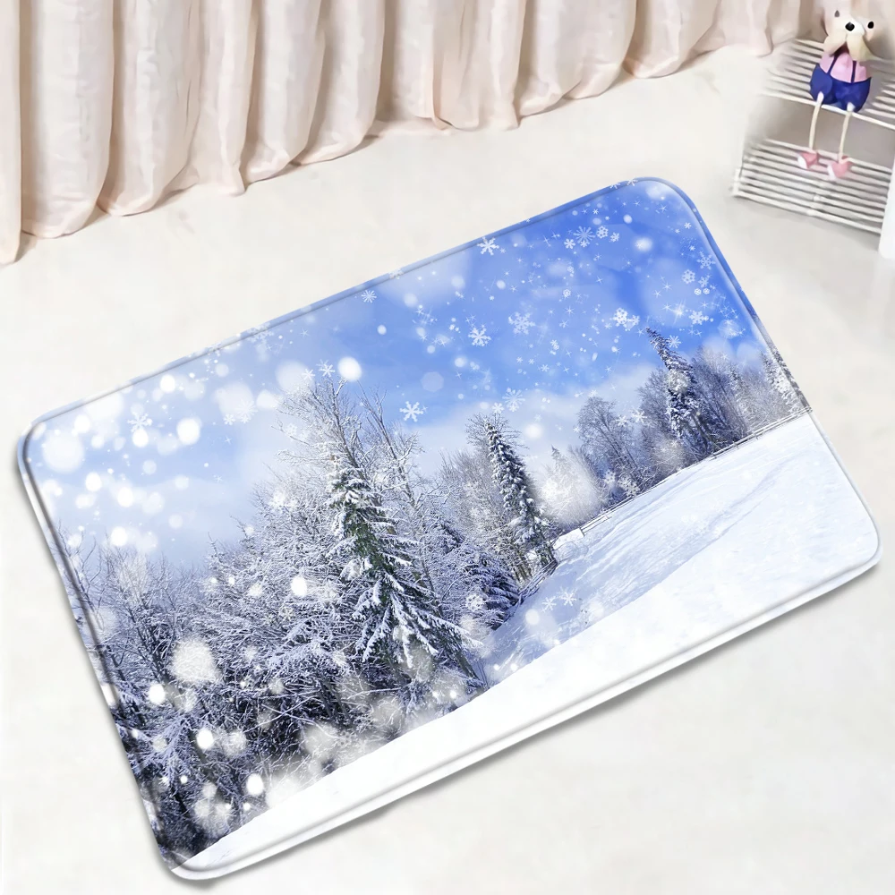 Отзывы о Зимние коврики для ванной с изображением снега сосна ели узором Нескользящие