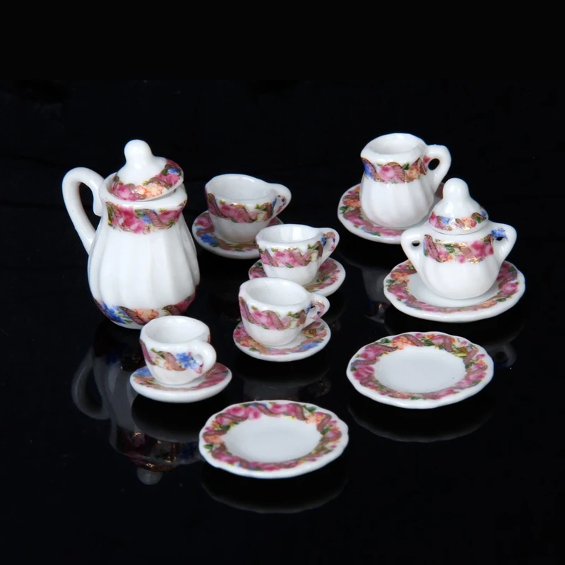 Отзывы о 15 шт. Миниатюрный фарфоровый чайный сервиз для кукольного домика тарелка + чашка