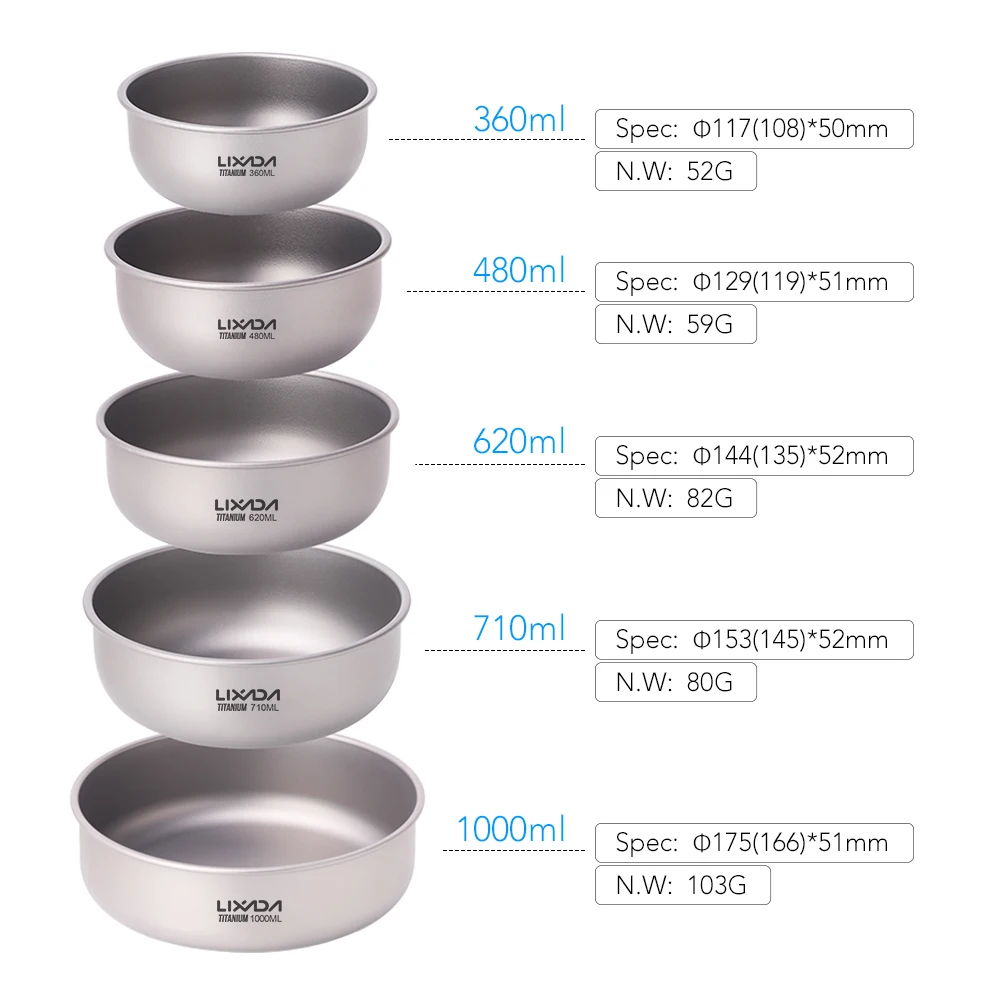 Отзывы о Титановые чаши Lixada 360 мл/480 мл/620 мл/710 мл/1000 мл столовая чаша для фруктов и овощей