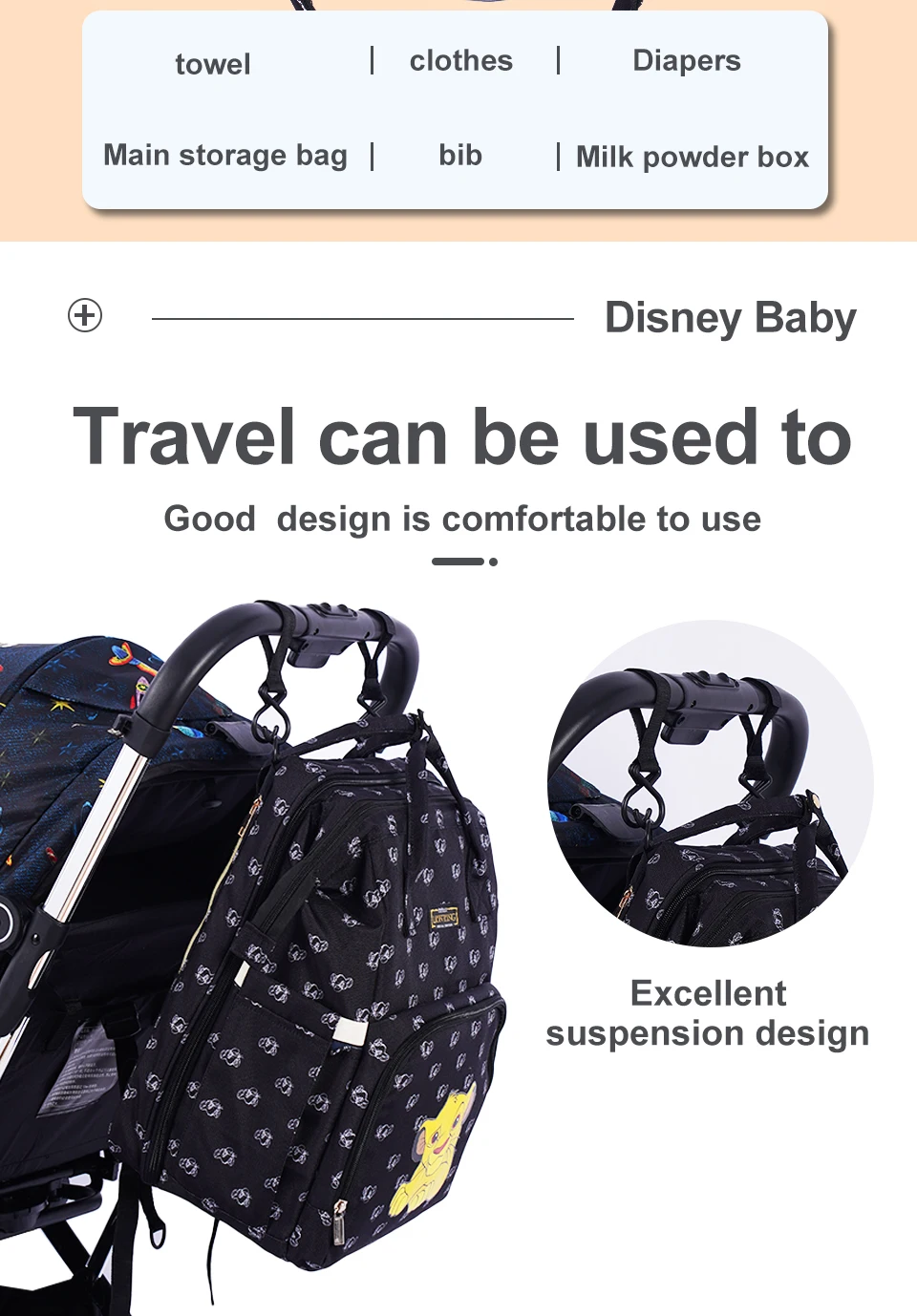 Сумка для подгузников Disney, рюкзак для кровати, детская кровать, водонепроницаемая сумка для коляски, рюкзак для подгузников для мам и мам, рюкзак для подгузников