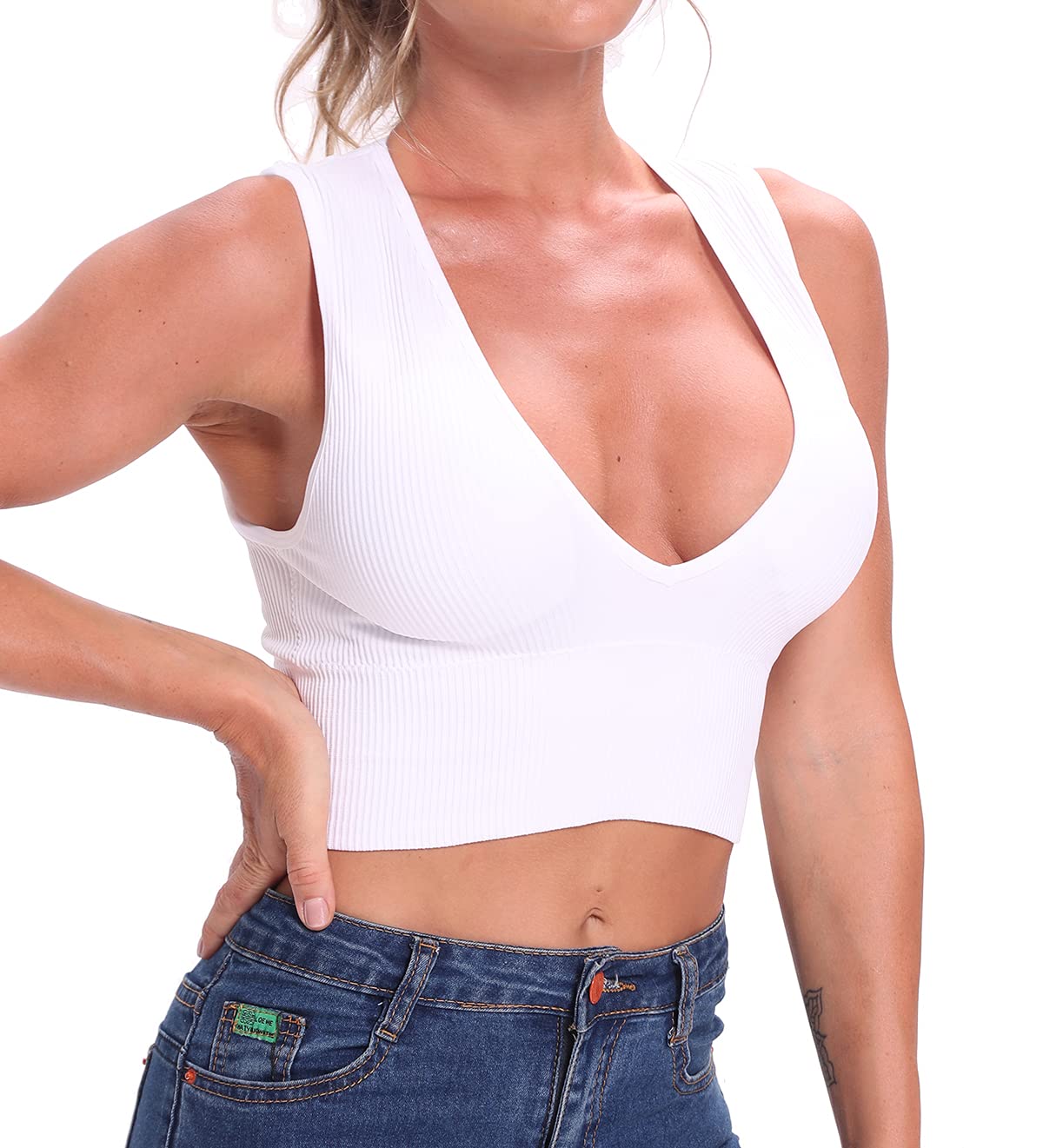 Отзывы о Женский летний спортивный жилет wsevypo однотонные ребристые кроп-топы на