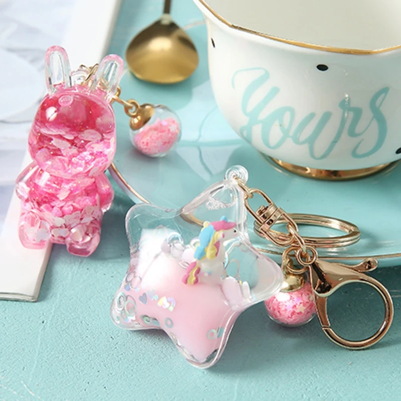 Высококачественный Материал: Изготовлен из высококачественного пластика, прозрачный пластик с нетоксичной жидкостью и красочными краями внутри, Гладкий полированный край, потрясающий кулон для ваших ключей.