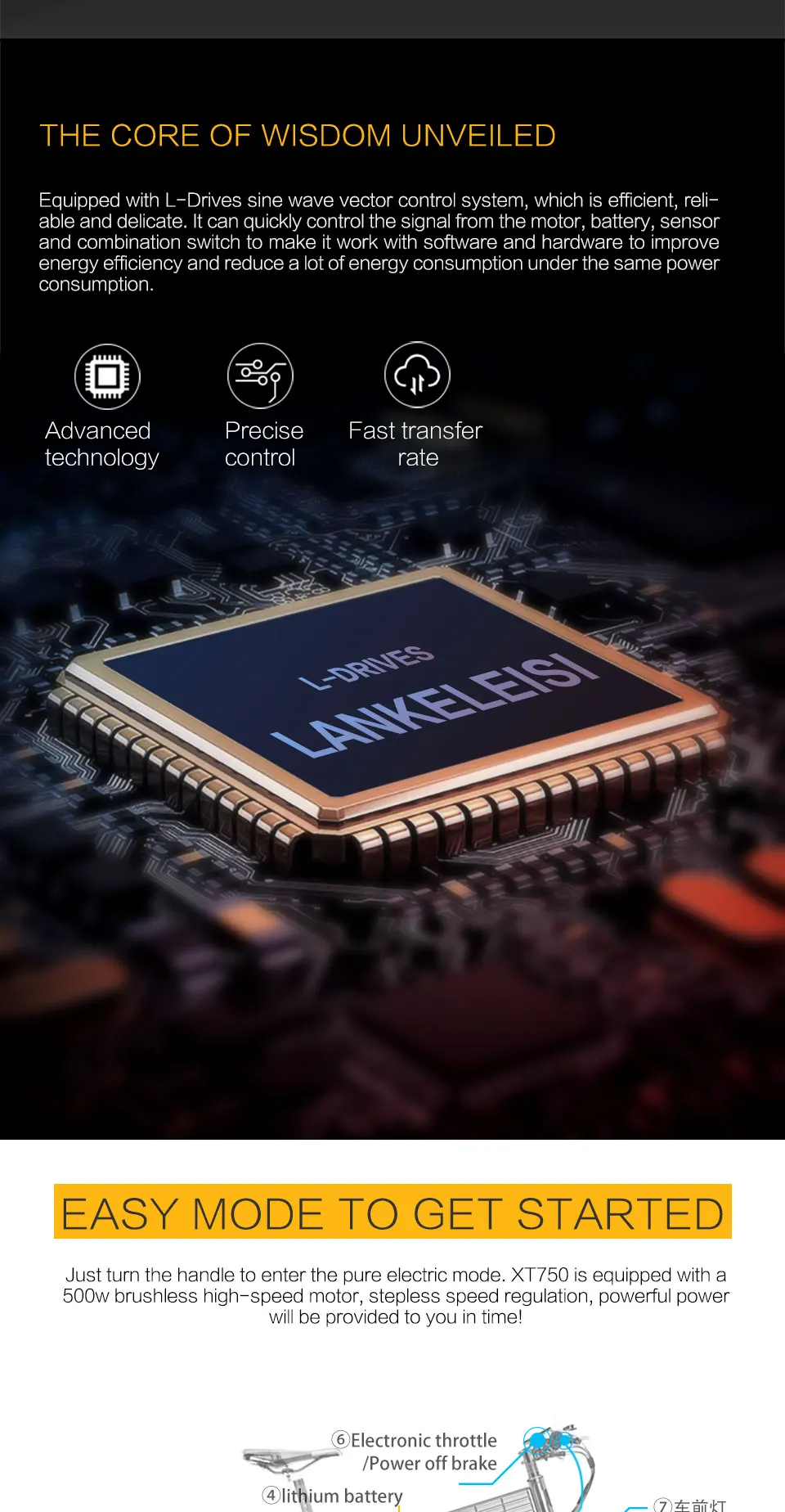 Мотор: новый модернизированный бесщеточный двигатель 48V50 0W