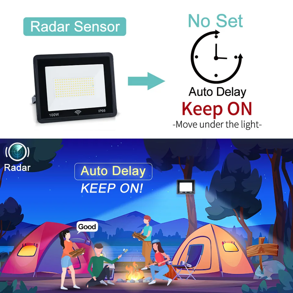 Натуральный светильник с радарным датчиком, наружный светильник ing 20 Вт 30 Вт 50 Вт 100 Вт 220 В, автоматический светильник задержки ing
