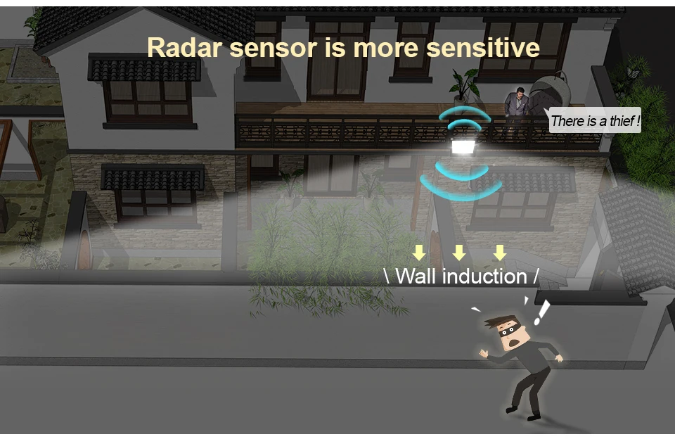 -Радар может проникать в стены и препятствия, и чувствительный эффект очень проникает.