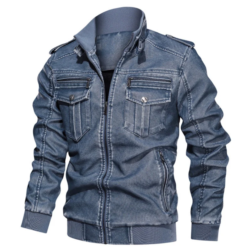Отзывы о Куртка мужская кожаная на молнии повседневная мотоциклетная куртка с карманами