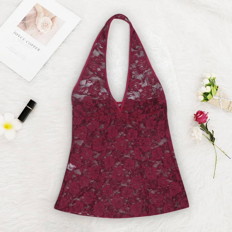 Женское сексуальное нижнее белье, Прозрачное Кружевное боди с чокером, женское шелковое Новое экзотическое платье с открытой спиной, очаровательные платья с v-образным вырезом