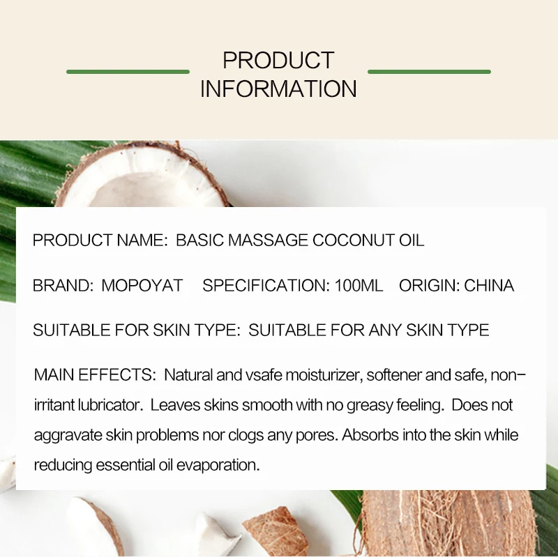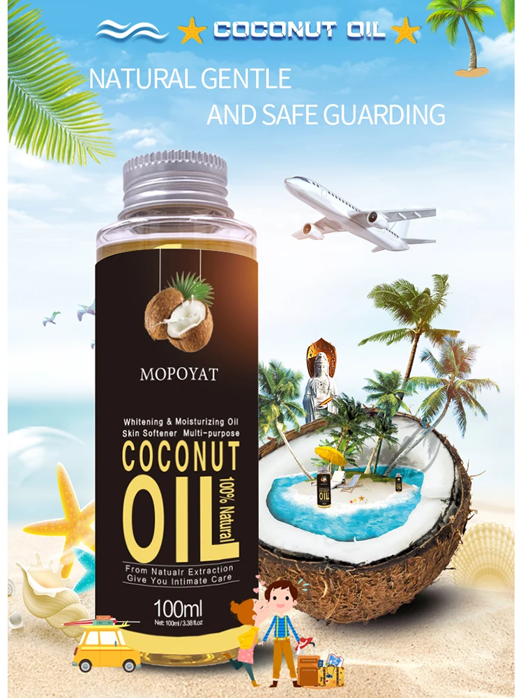 MOPOYAT100 % натуральное органическое кокосовое масло для тела, массажное эфирное масло для лица, увлажняющее масло для кожи, контроль за кожей, уход за кожей, помогает сну 100 мл