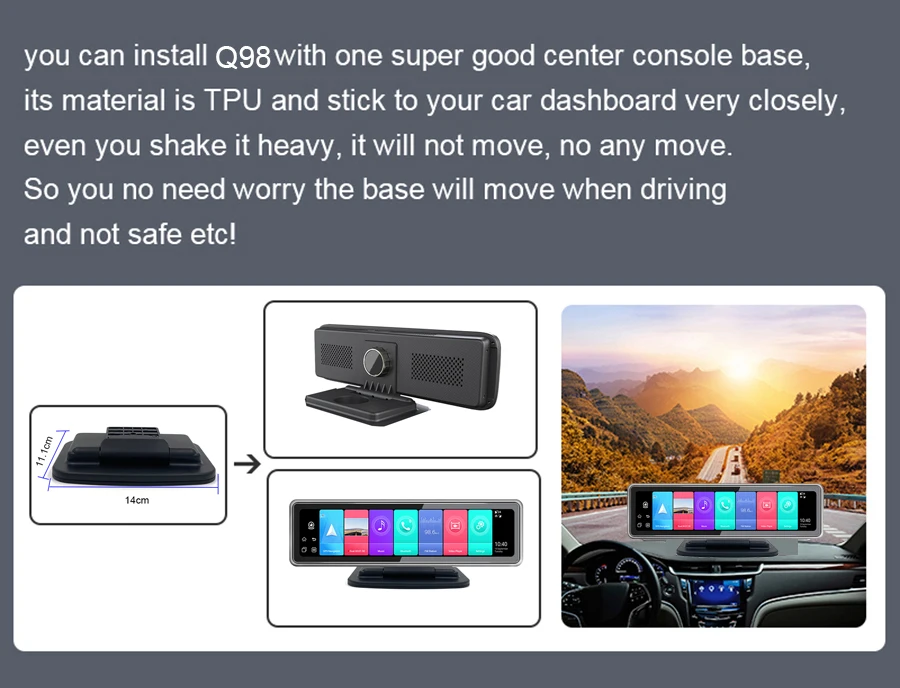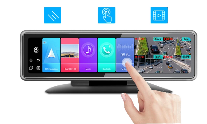 Anfilite Q98, это одна 4CHS зеркальная видеорегистраторная камера с операционными системами Android 9,0, также доступна с GPS, WiFi и 4G. Идеально подходит для управления парком транспортных средств с GPS приложением и программным обеспечением центрального мониторинга, изготовленным для транспортных средств, грузовиков, автобусов, школьных автобусов.
