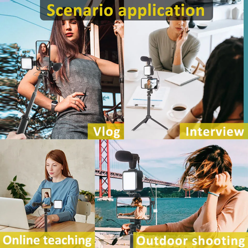 Профессиональный смартфон видео комплект микрофонов светодиодный светильник штатив кронштейн селфи палка, подходит для Live Vlogging фотографии YouTube Filmmaker аксессуары