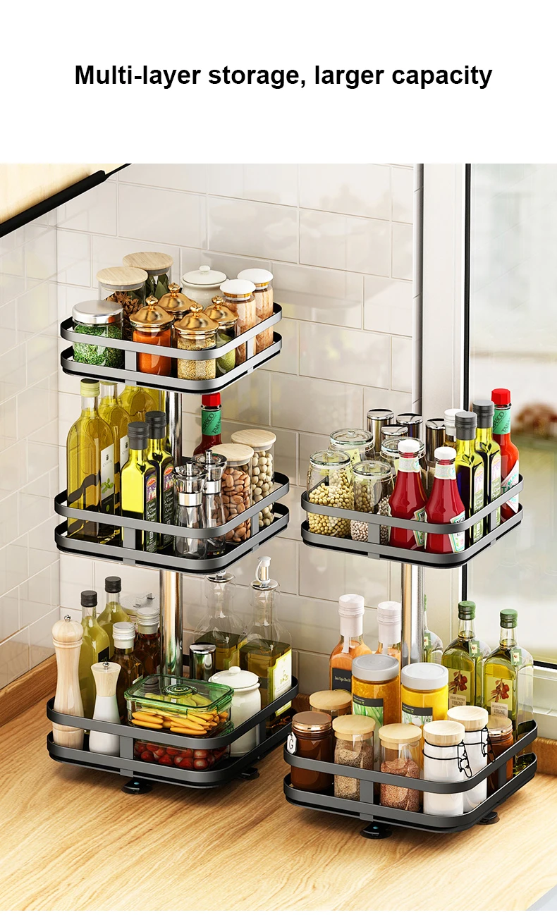 Вращающаяся на 360 ° стойка для хранения, квадратная и круглая стойка для кухонного для сезонных приправ, органайзер для хранения косметики, органайзер для кухни