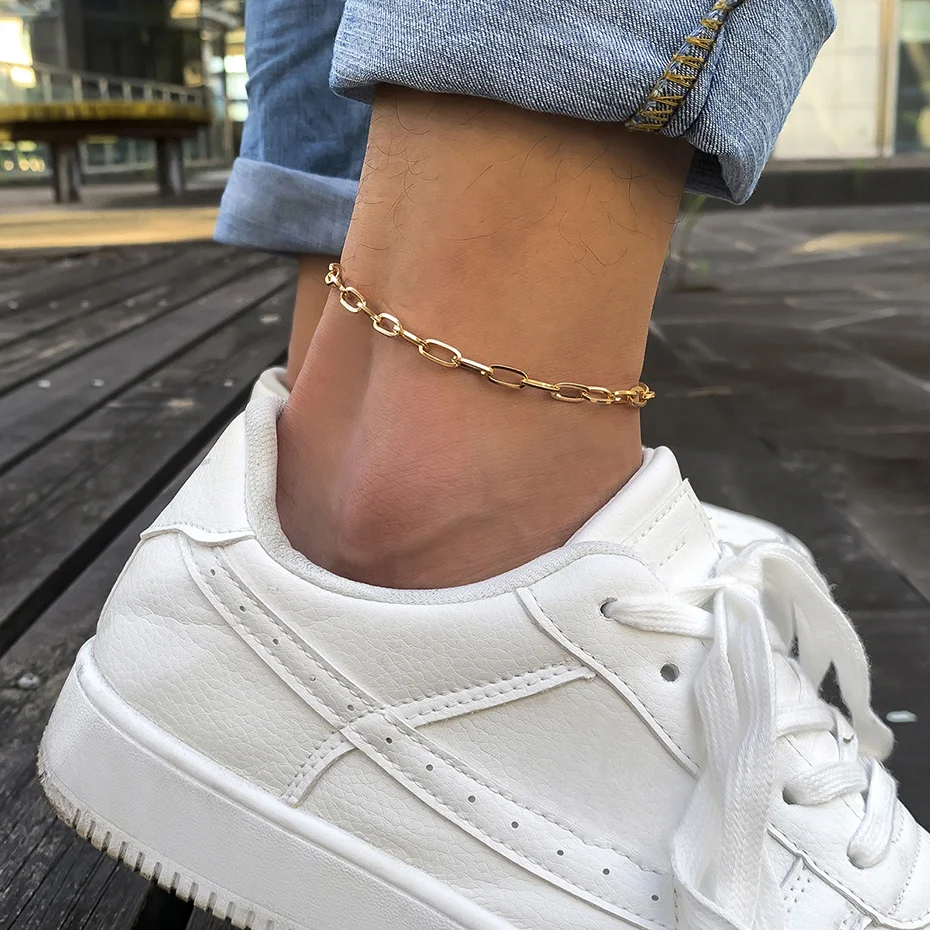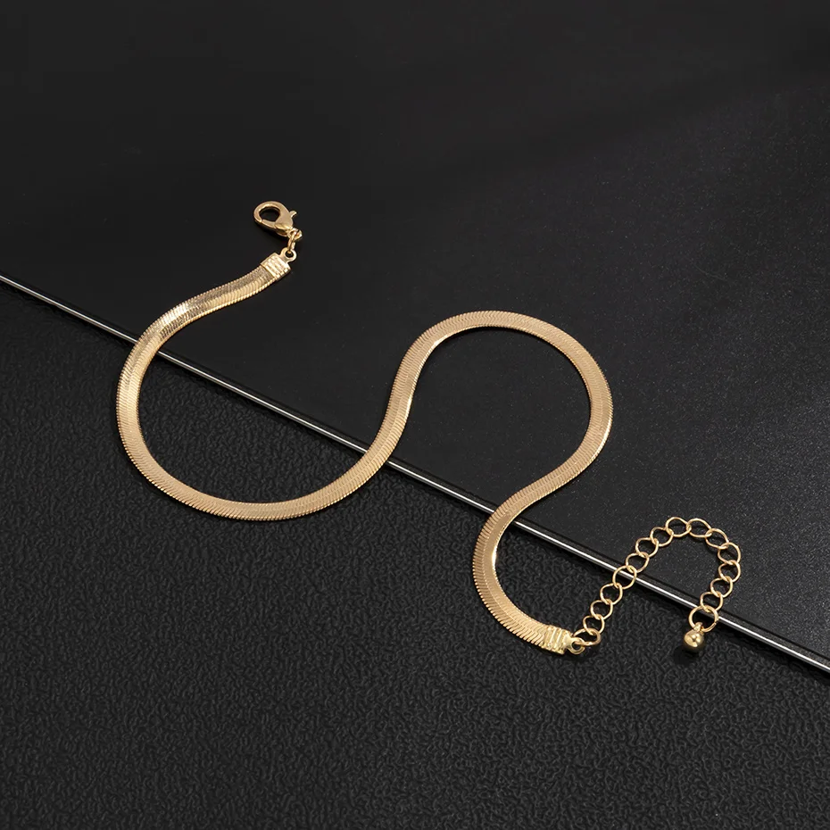 Готический базовый простой браслет с плоским лезвием и цепочкой в виде змеи на ноге для мужчин и женщин, золотой медный браслет в стиле панк, ювелирные изделия для ног Kpop