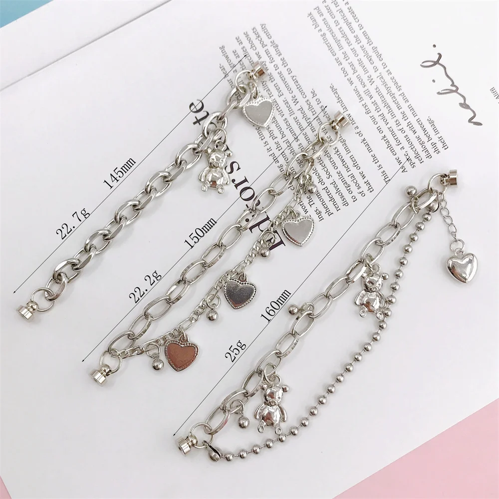 Тип товара: металлическая цепочка любовь браслет diy мобильный телефон Чехол ювелирные изделия аксессуары Материал: металл Длина: 14,5/15/16 см Рисунок: маленький медведь/любовь Цвет: серебристый Посылка включает в себя: 1x мобильный телефон ремешок