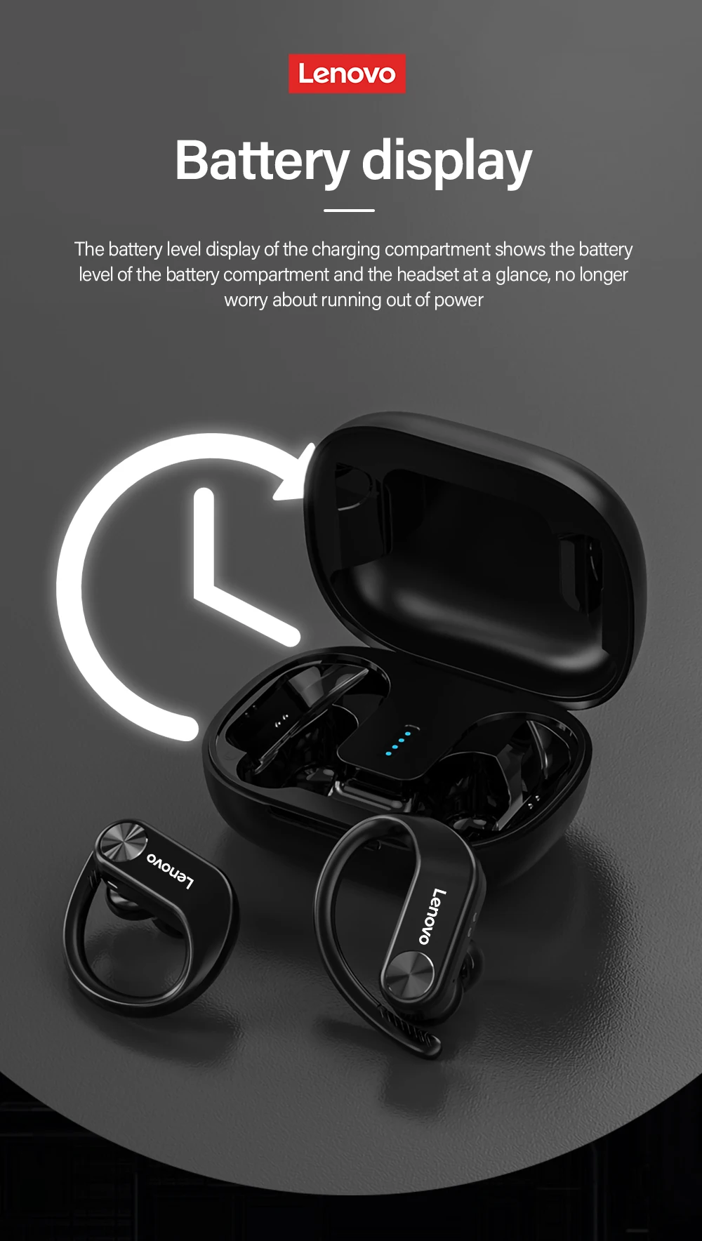 1. Чехол для зарядки емкостью 400 мАч, непрерывный источник энергии. Электрические количества отображаются независимо для двух наушников и зарядный чехол.
