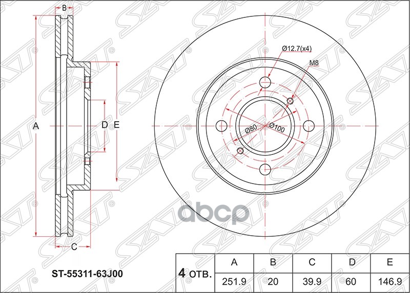 Диск Тормозной Перед Suzuki Swift Iii Zc#/Zd#/M13a/M15a 05-(2 Шпильки) Sat арт. ST-55311-63J00