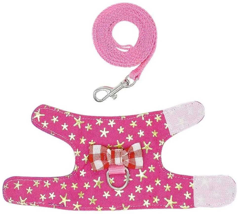 Поводок для домашних животных, морская свинка, комплект для хорьков, крыс, хомяков, жилетка с бантом для маленьких животных, для прогулок на открытом воздухе, Тяговая веревкаПоводок и поводок. Изготовлен из высококачественной джинсовой ткани и короткой плюшевой подкладки, мягкая текстура и долговечность.