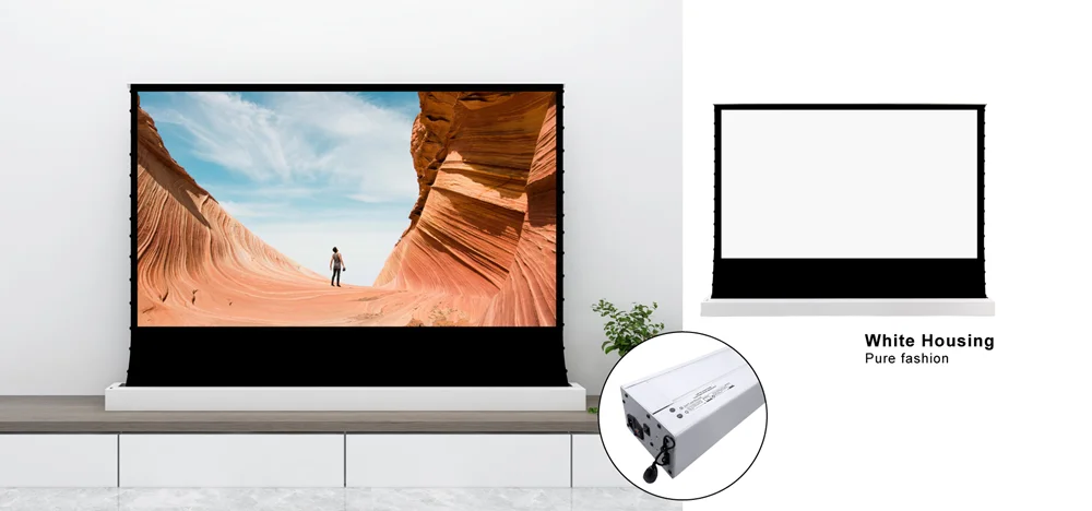 VIVIDSTORM 8K Cinema White Electric Motorized Tab-Натяжной напольный подъемный проектор для домашнего кинотеатра, VA-W1 является премиум, выдвижной и установлен под полом для бесшовного вида, который расширяется вверх; отличное решение для любого многоцелевого домашнего кинотеатра, дома поклонения, спортивного бара, конференц-зала и т. Д.; Он имеет стильный черный блеск и полностью собран. С помощью большого размера ролика с натянутой системой, он обеспечивает лучшую плоскость, предлагая минимальное искажение изображения.