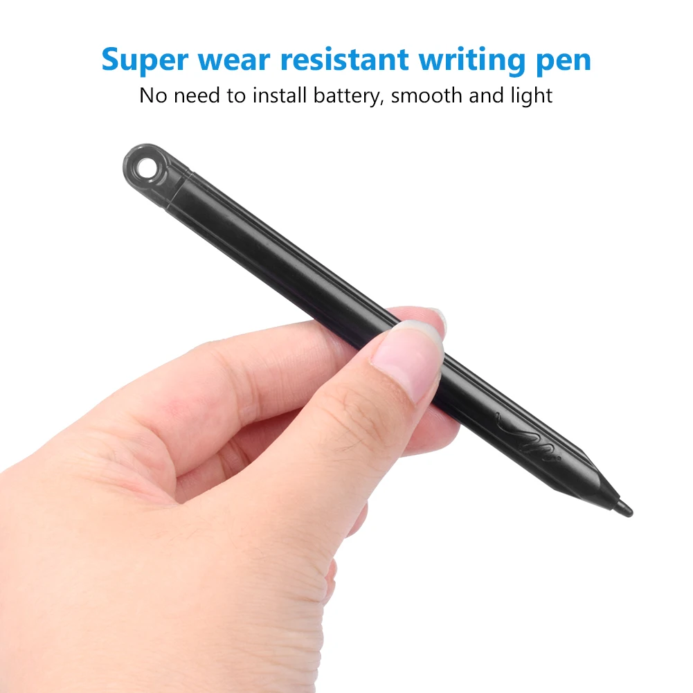 Портативный и простой в использовании. Электронный графический планшет ультратонкий и светильник, легко помещается в кошелек, портфель или рюкзак. Его аккумулятор используется для длительного времени и легко заменяется при полном объеме. Ручка для письма может прилипать к держателю мягким нажатием.