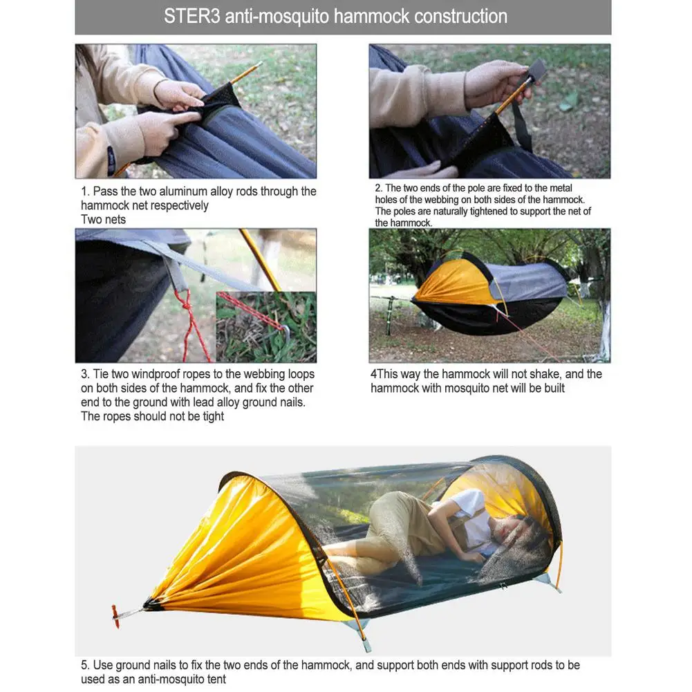 3. Три режима: i, режим защиты от жуков: сети с высокой плотностью, которые эффективно предотвращают попадание мелких ошибок. Используйте опорные стержни для поддержки гамака, чтобы предотвратить опрокидывание, значительно улучшая пространство использования. Ii, режим гамака: жуковые сети и алюминиевые сплавы. Опорный стержень можно снять и использовать как обычный гамак. Iii, режим палатки: Может использоваться как палатка, когда нет деревьев на земле. На обеих сторонах гамака есть затемняющие ткани для эффективного предотвращения прямых солнечных лучей (Примечание: Используйте их на сухом грунте).