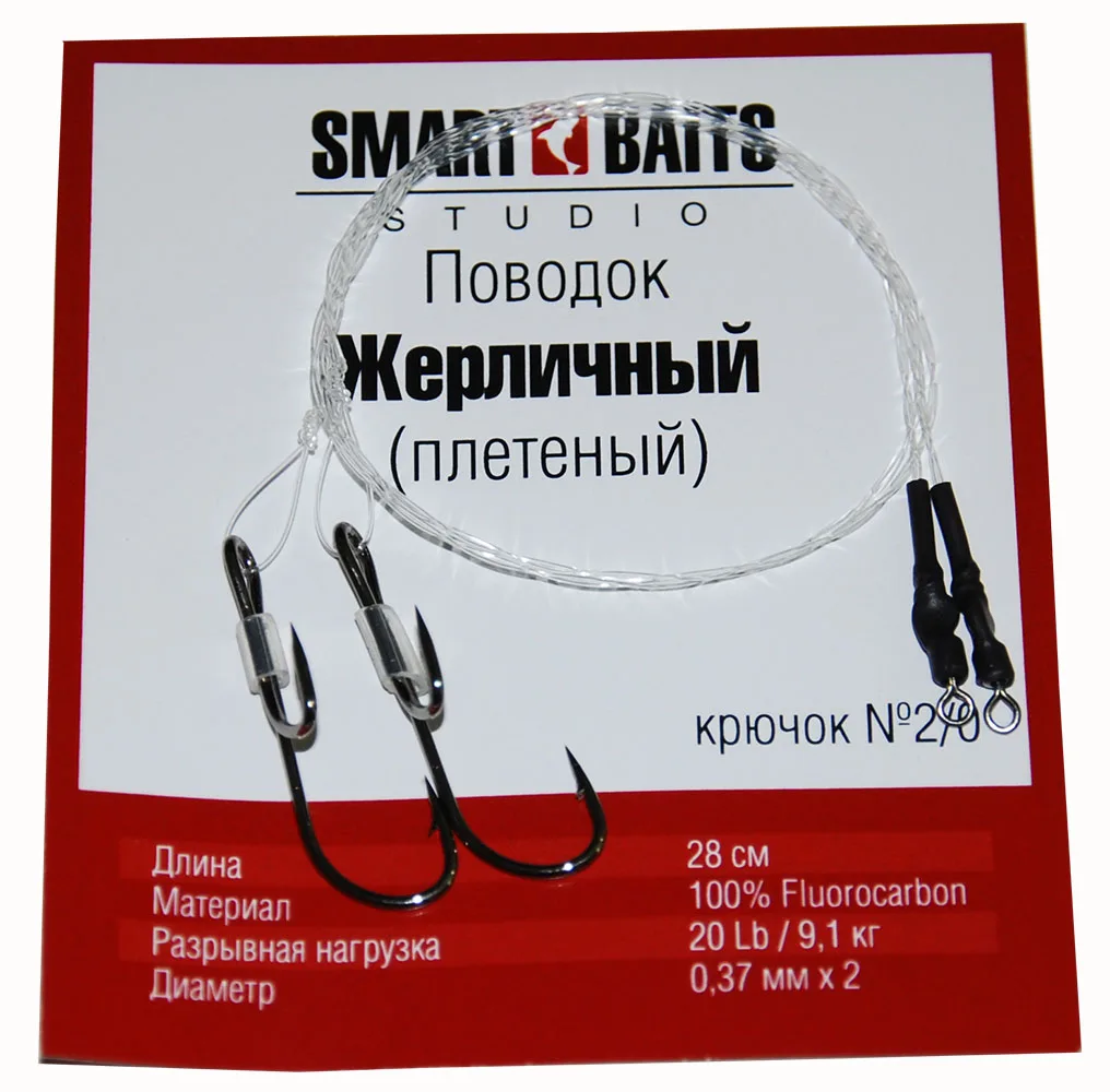 Жерличный плетеный поводок разработан для ловли малоактивного хищника. Отличительная черта этого типа поводков: мягкость и практическая незаметность в воде для хищника. Никому не секрет, что неактивный хищник, особенно в период глухозимия, может продолжительное время наблюдать за живцом, а затем медленно, нехотя передвигается, слегка прихватив его. Если поводок не соответствует вышеперечисленным требованиям, то скорее всего рыболов увидит холостой загар или поклевка вовсе не случится. Эксперты компании Smart Baits Studio разработали поводок с возможностью насадки живца традиционно, под плавник или губу, а также методом «через жабры». Для насадки живца через жабры, необходимо удалить (сдвинуть) силиконовую трубку с двойника, протащить поводок через жабры живца (можно с помощью карпового крючка для бойлов или вязальной спицы), затем одеть двойник и аккуратно протянуть поводок до тех пор, пока двойник не окажется во рту у живца. Это один из самых надежных, гуманных и результативных методов для насадки живца. Благодаря использования качественного крючка и флюрокарбона, перекусить такой поводок крайне сложно и сход хищника практически равен нулю. При всем этом, поводок мягкий и выглядит очень миниатюрно.