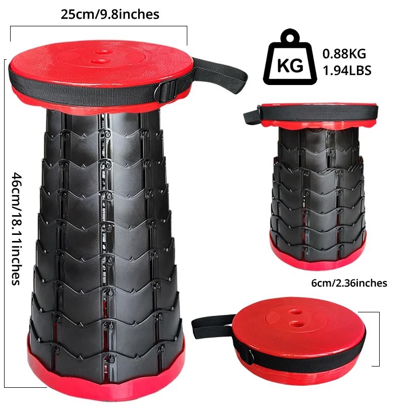 Грузоподъемность: 180 кг/400 фунтов Размер в сложенном виде: 6,5 см/2,56 в Расширенная Высота: 46 см/18,11 дюйма Место использования Когда он закрыт, он достаточно компактный, чтобы хранить в любом месте. Когда открывается, он достаточно прочный и надежный, не беспокойтесь, пока вы сидите на нем (по центру). Он идеально подходит для кемпинга, путешествий, рыбалки, в поезде, когда у вас нет места, или для тренировки собак и т. д. Регулируемая высота делает его подходящим для детей и взрослых. Выдвижной Складной стул действительно удобен и практичен, вы можете взять его там, где хотите!