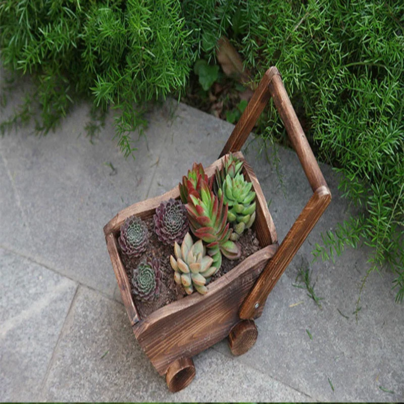 Отзывы о Креативный деревянный цветочный горшок мультяшная тележка садовый плантатор