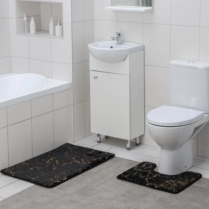 Отзывы о Набор ковриков для ванны и туалета Доляна Мрамор 2 шт: 40×50 50×80 см | Дом сад