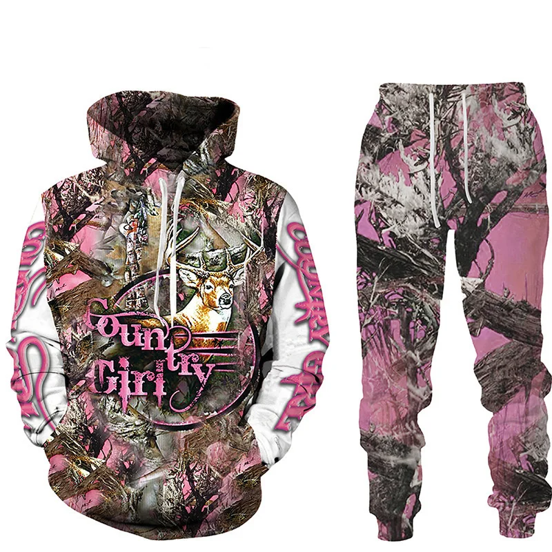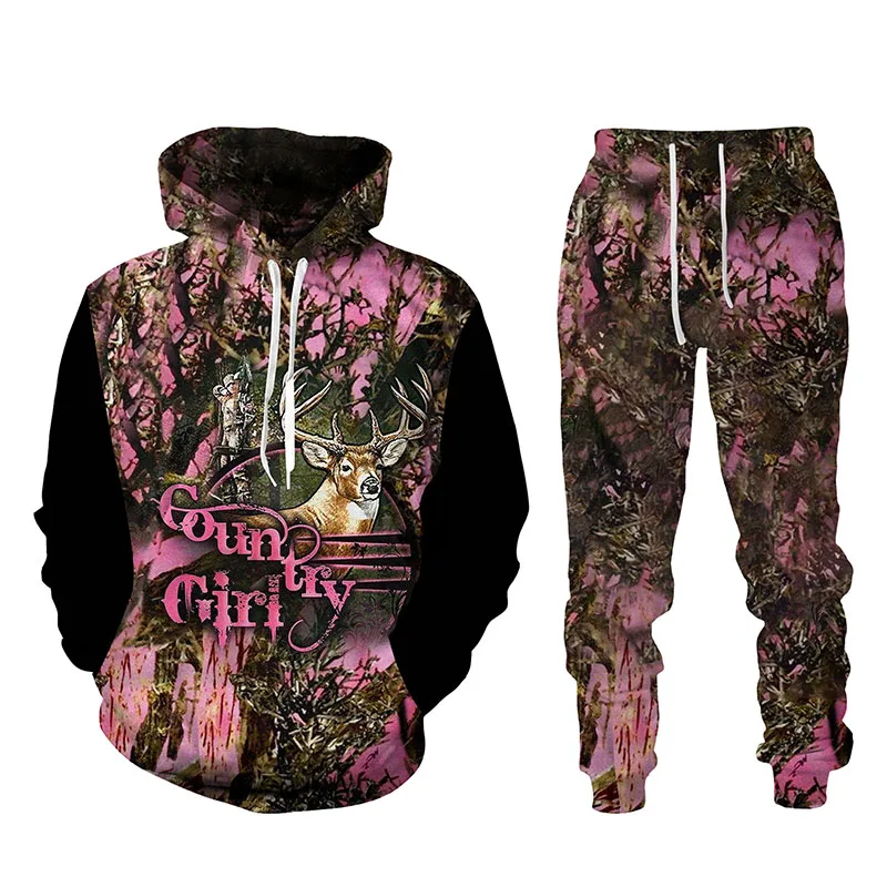 Отзывы о Deer 3D Full Printed Harajuku Hoodies Pants Tracksuit 2pc Women Fashion Casual Pullover Sweatshirts Set Women's Clothing Suits - купить