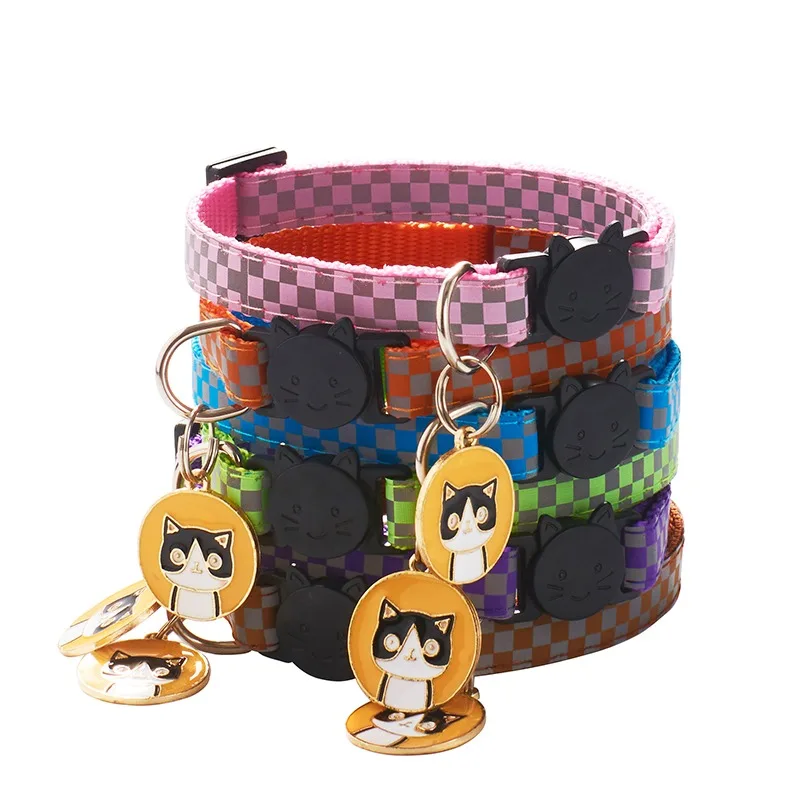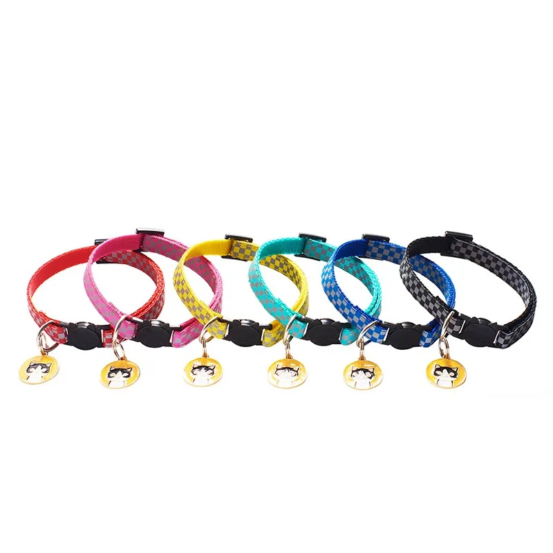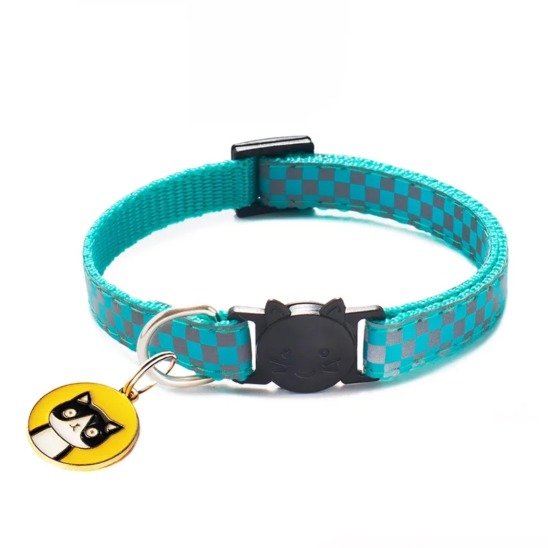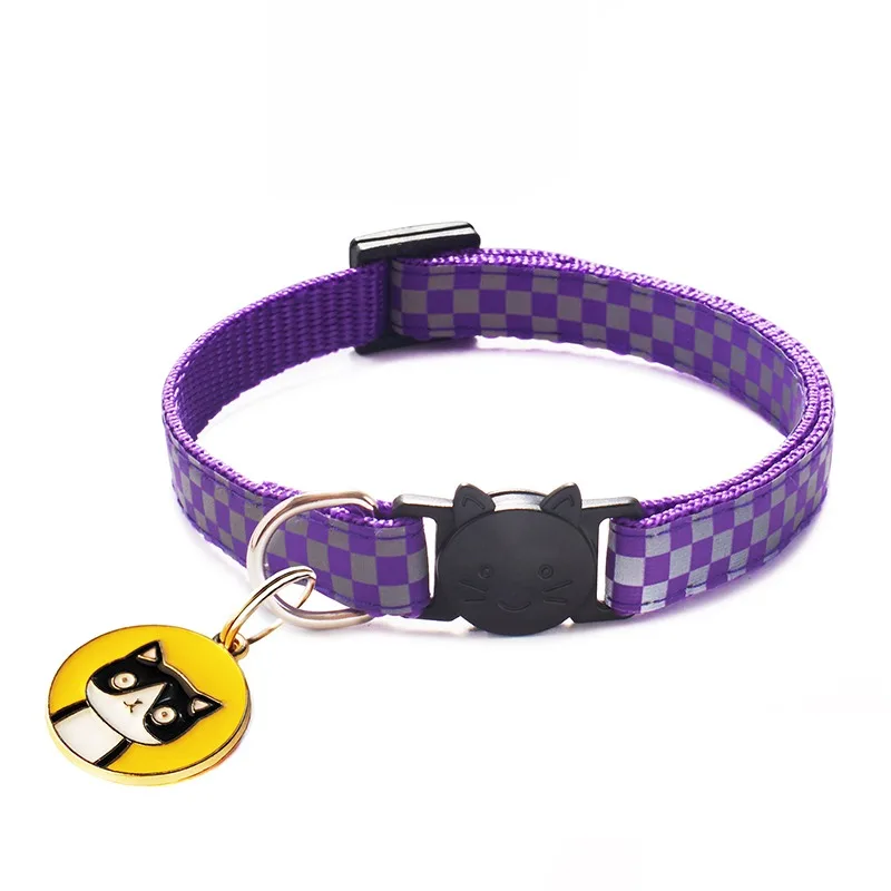 | 12 цветов, подвески для кошек, ошейники для домашних животных, регулируемые нейлоновые пряжки, светоотражающие ошейники для домашних животных, аксессуары с рисунком головы кошки Характеристика: Ширина воротника: 1 см; Диапазон регулировки 19-32 см. Оснащен отколовшейся пряжкой, которая будет автоматически разблокирована внешней силой.