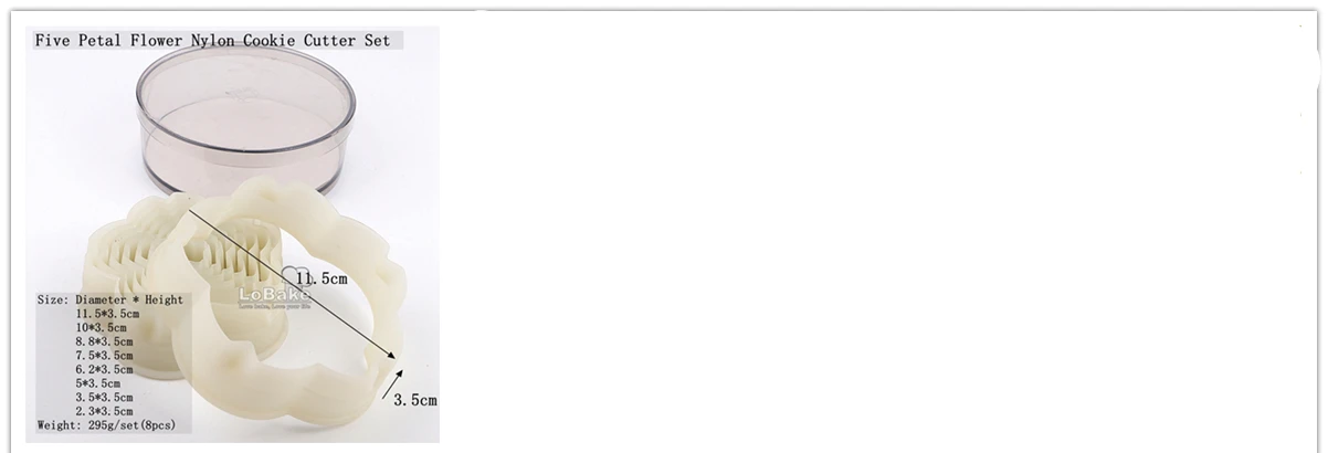 Круглая формаРазмер: диаметр * высота10*3,5 см9*3,5 см8*3,5 см7*3,5 см6*3,5 см5*3,5 см4*3,5 см3*3,5 см2*3,5 смВес: 202 г/компл. (9 шт.) КвадратныйРазмер: Ширина * ширина * высота9,8*9,8*3,5 см8,8*8,8*3,5 см7,8*7,8*3,5 см6,8*6,8*3,5 см5,8*5,8*3,5 см4,8*4,8*3,5 см3,8*3,8*3,5 см2,8*2,8*3,5 см1,8*1,8*3,5 смВес 278 г/компл. (9 шт.) ШестигранникРазмеры: 10,5*9,2*3,5 см9,5*8,2*3,5 см8,5*7,2*3,5 см7,2*6,3*3,5 см6,2*5,4*3,5 см5*4,5*3,5 см4*3,5*3,5 см3*2,5*3,5 см1,8*1,5*3,5 смВес: 183 г/компл. (9 шт.) ОвальныйРазмер: 11*8*3,5 см9,8*6,8*3,5 см8,5*5,8*3,5 см7,2*4,8*3,5 см5,8*3,8*3,5 см4,5*2,8*3,5 см3,3*1,8*3,5 смВес: 208 г/компл. (7 шт.) Лепестки тригонаРазмер: 11*10*3,5 см9,7*8,7*3,5 см8,4*7,7*3,5 см7*6,5*3,5 см5,7*5*3,5 см4,3*3,8*3,5 см3*2,8*3,5 см1,7*1,5*3,5 смВес: 269 г/компл. (8 шт.) Пятиконечная звездаРазмер: 12*8,5*3,5 см9,2*6,8*3,5 см6,7*4,8*3,5 см4*3*3,5 см2*1,5*3,5 смВес: 184 г/компл. (5 шт.) Звезда с шестью точкамиРазмеры: 11,7*7,7*3,5 см10*6,8*3,5 см8,5*5,6*3,5 см7,1*4,7*3,5 см5,6*3,8*3,5 см4,2*3*3,5 см2,8*2*3,5 смВес: 235 г/компл. (7 шт.) Форма вентилятораРазмеры: 12,3*6,5*3,5 см10,8*5,5*3,5 см9*4,6*3,5 см7,5*3,7*3,5 см6*2,9*3,5 см4,3*1,9*3,5 см2,7*1*3,5 смВес: 198 г/компл. (7 шт.) Форма сердцаРазмер: 11*9,5*3,5 см9,5*8*3,5 см8*6,8*3,5 см6,4*5,4*3,5 см5*4*3,5 см3,4*2,8*3,5 см2*1,5*3,5 смВес: 200 г/компл. (7 шт.) Половина луныРазмеры: 12*6,5*3,5 см11,2*5,8*3,5 см10,5*5*3,5 см9,7*4,2*3,5 см9*3,4*3,5 см8*2,7*3,5 см7,2*2*3,5 смВес: 292 г/компл. (7 шт.) Шесть лепестковРазмеры: 11,3*10*3,5 см10,2*8,5*3,5 см9*7,5*3,5 см7,5*6,2*3,5 см6,1*5*3,5 см4,2*3,8*3,5 см3,2*2,5*3,5 см1,8*1,5*3,5 смВес: 295 г/компл. (8 шт.) Пять лепестков цветок нейлон резак печенья наборРазмер: диаметр * высота11,5*3,5 см10*3,5 см8,8*3,5 см7,5*3,5 см6,2*3,5 см5*3,5 см3,5*3,5 см2,3*3,5 смВес: 295 г/компл. (8 шт.) Нейлоновый резак для печенья в форме глазРазмер: 11*6,5*3,5 см9,6*5,4*3,5 см8*4,4*3,5 см6,5*3,6*3,5 см5*2,7*3,5 см3*2*3,5 см2*1*3,5 смВес: 178 г/компл. (7 шт.) Рифленый нейлоновый резак для печенья в форме каплиРазмер: 12*8,7*3,5 см10,5*7,8*3,5 см9,2*6,5*3,5 см7,8*5,5*3,5 см6,6*4,5*3,5 см4,8*3,5*3,5 см3,2*2,4*3,5 см2*1,3*3,5 смВес: 223 г/компл. (8 шт.)
