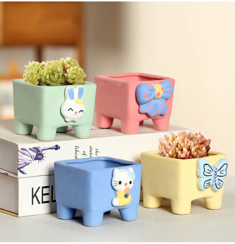 Название: Корейский мультфильм ручная роспись бант кролик цветочный горшок для суккулентных растений