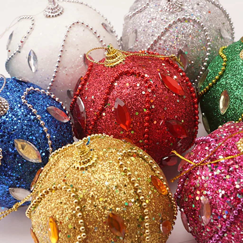 Рождественские блестящие шары со стразами орнамент с рождественской елкой украшение 8 см