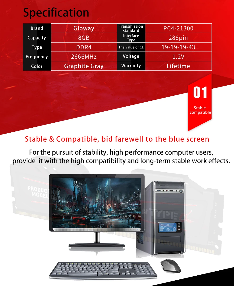 Отзывы о Оперативная память Gloway ddr4 8 Гб 16 2666 МГц 1 2 в пожизненная гарантия высокая