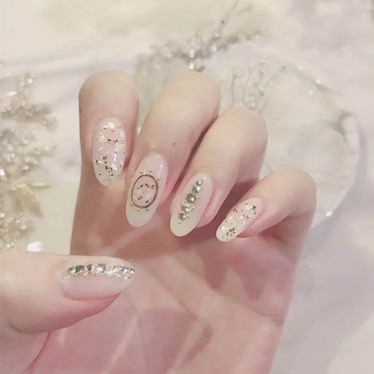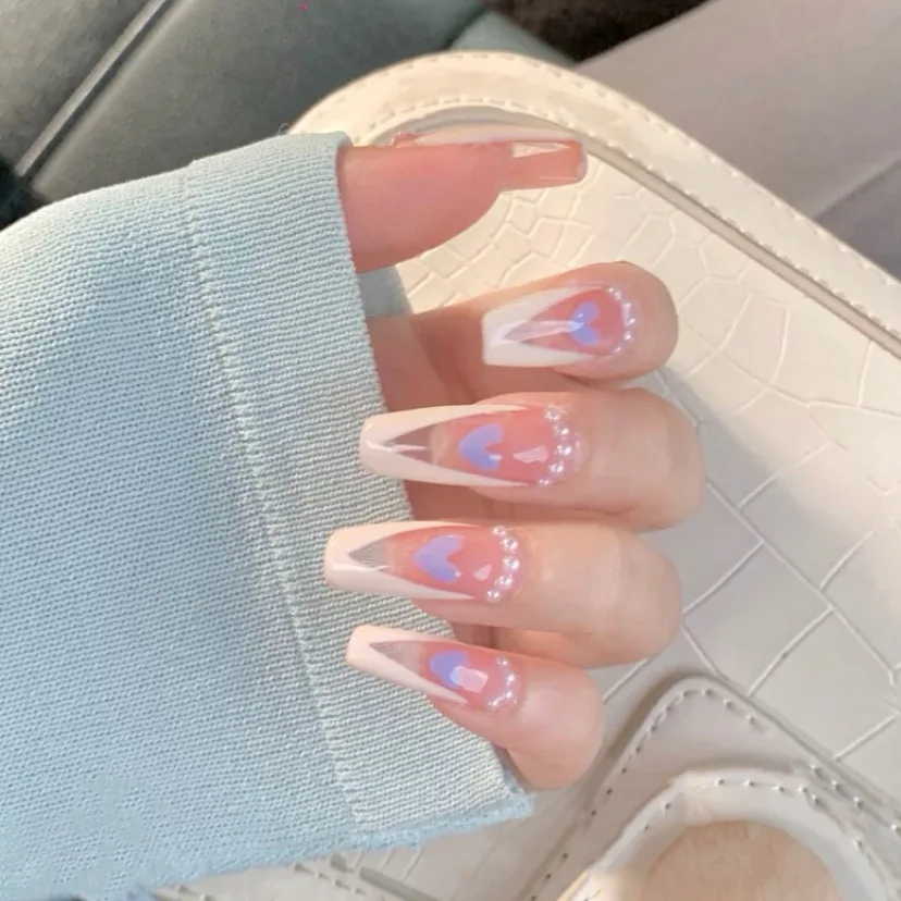 Отзывы о Искусственные ногти в виде белого сердца с дизайном градиентные стразы