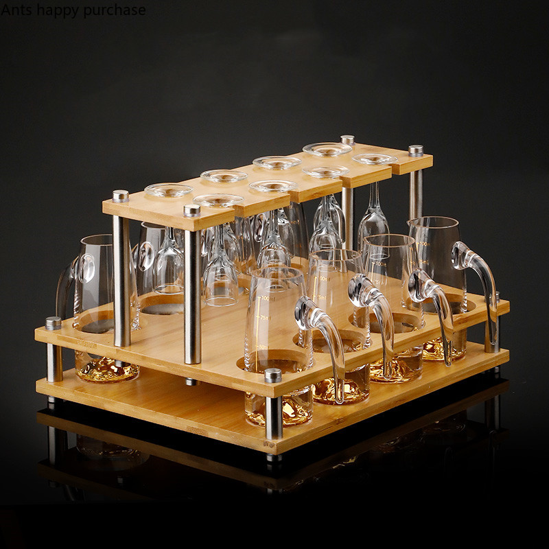 Отзывы о Набор хрустальных бокалов для вина плоские фляжки с деревянной подставкой