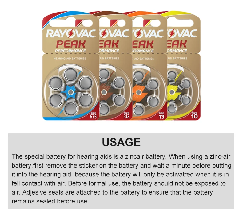 60 шт Rayovac пиковый слуховой аппарат батареи 312 A312 312A ZA312 PR41 S312 цинковый воздушный Аккумулятор для BTE слуховые аппараты