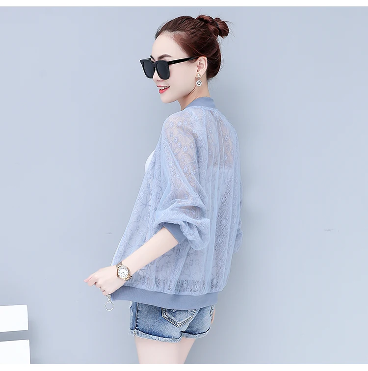 Отзывы о Летняя женская тонкая кружевная куртка белая синяя новая весенняя куртка-бомбер