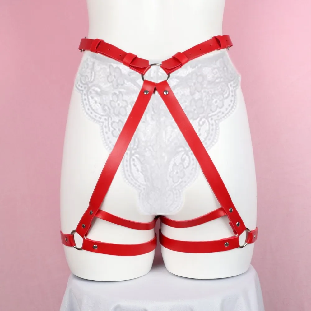 Отзывы о Женский кожаный ремень-подвязка красная портупея бондаж для тела нижнее белье