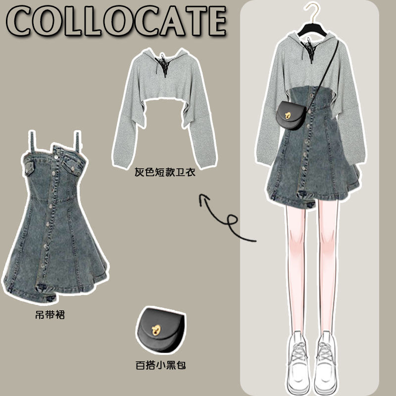 Отзывы о Женский костюм из двух предметов короткий свитер с капюшоном и джинсовая юбка