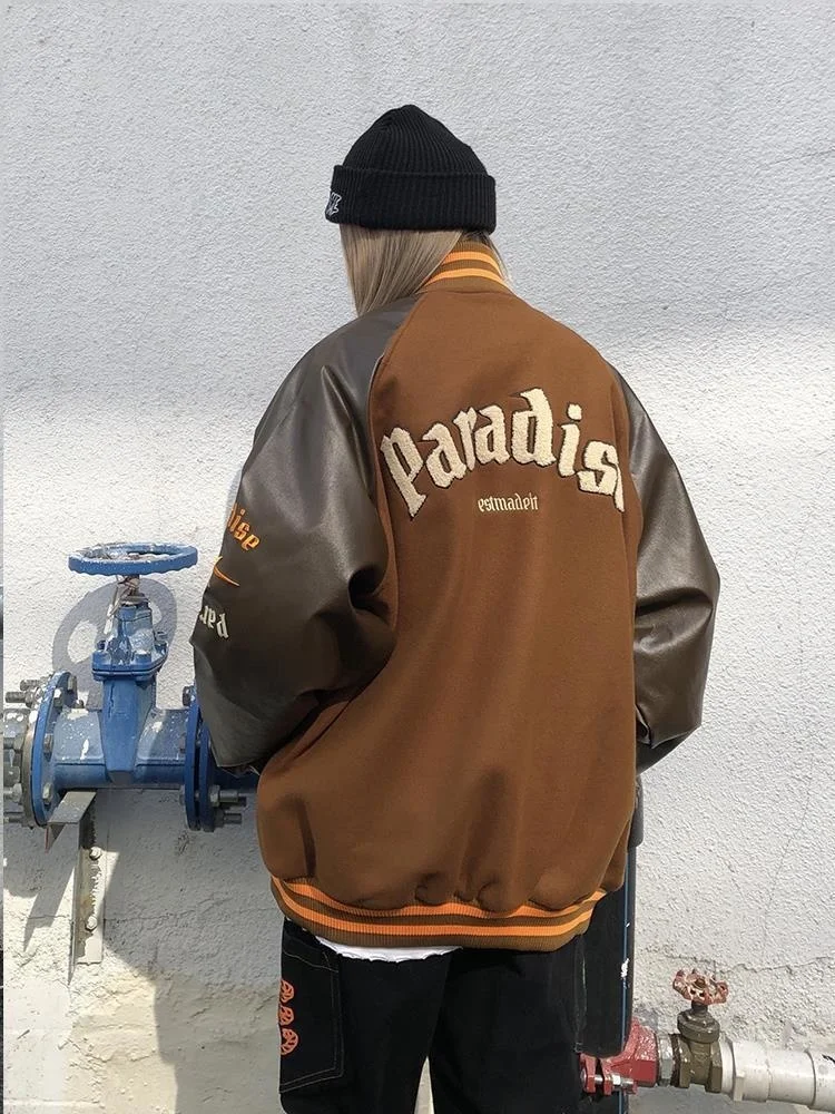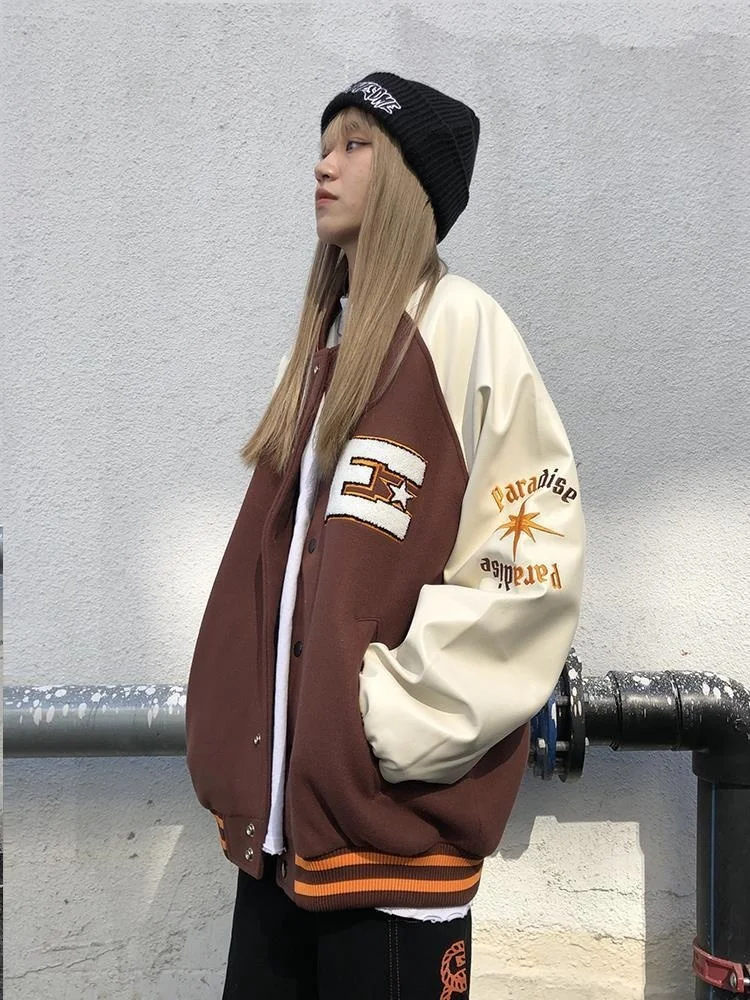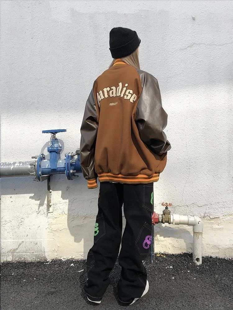 Осень PU Лоскутная Вышивка куртка женская 2021 уличная Свободная куртка с длинным рукавом Женская бейсбольная куртка размера плюс
