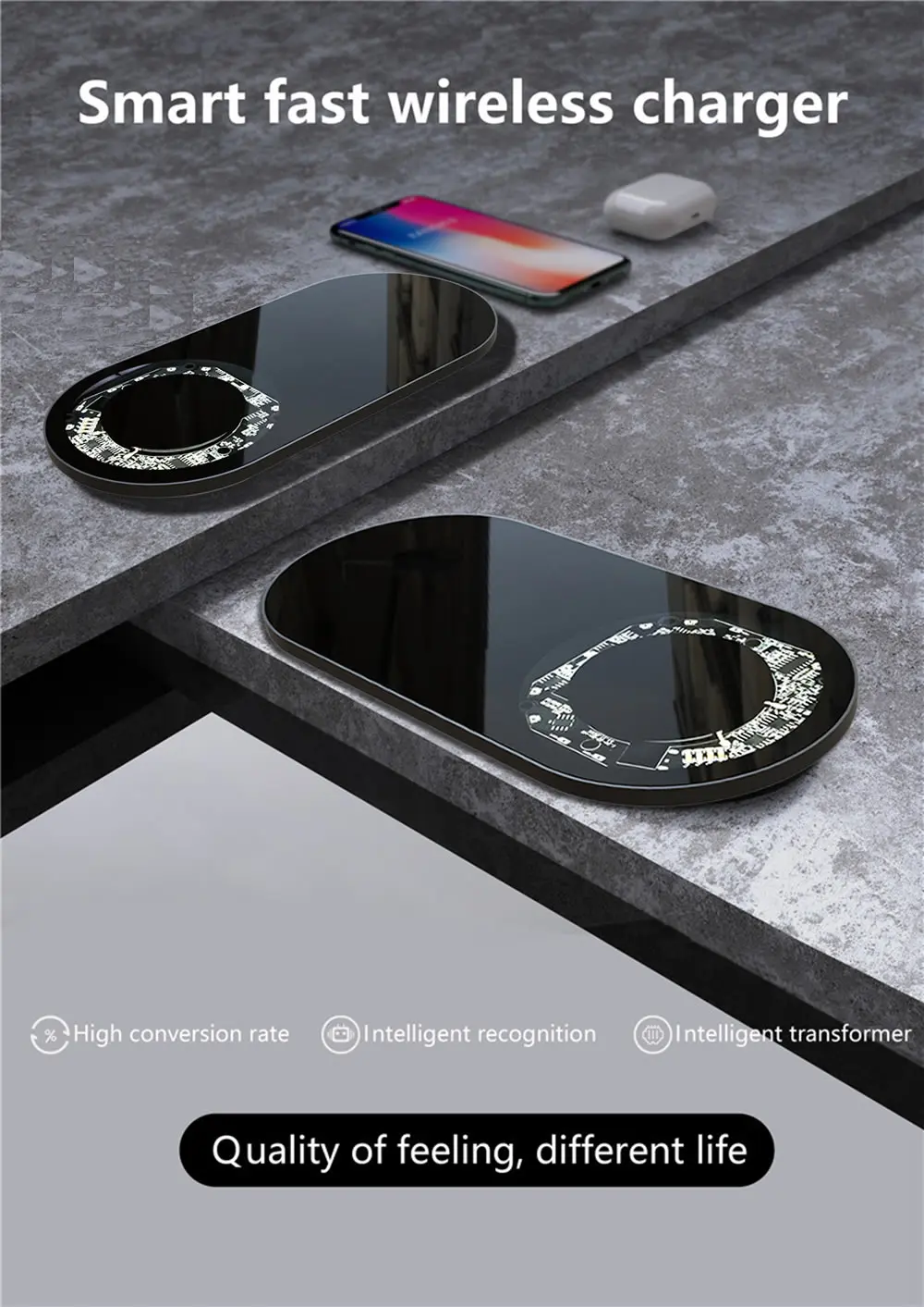 【 Дизайн 2 в 1: дизайн 2 в 1, поддержка быстрой беспроводной зарядки на выходе 10 Вт, может заряжать два мобильных телефона одновременно с высокой скоростью, или один мобильный телефон и один AirPods (с функцией беспроводной зарядки чехол общее количество) / AirPods Pro одновременно, или они могут работать отдельно.